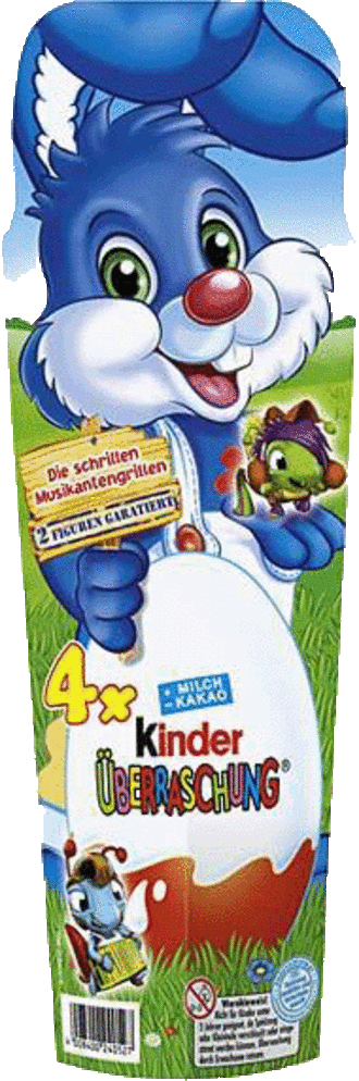Zu Ostern gibt es wieder diese originellen 2er Pack mit Kinder JOY Eiern. Das zweier Pack gibt es in den Farben blau, gelb und grün. Das Kinder JOY Ei ist ebenfalls in den drei Farben zu bekommen, umgeben von Blumen. Die neue Osterserie "Die schrillen Musikantengrillen" sind anscheinend nicht in den Eiern.