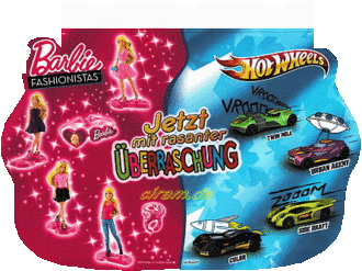 Dieser Palettenanhänger wirbt für die neue Barbie Serie und Hot Wheels. Bei den Hot Wheel Autos handelt es sich um Testware, von daher sollte der PAH selten sein. Zu finden ist der PAH an den gemischten Aufstellern, wo es die beiden Serien gibt. Also Augen auf ;-) [Live Suche auf eBay nach Hot Wheels starten].