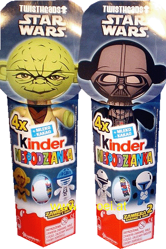 In Polen gibt es diese beiden 4er Packs von Twistheads Star Wars. Das Design lässt schon von Weitem die Star Wars Figuren Yoda und Darth Vader erkennen. Zwei Figuren der Serie werden pro 4er Pack garantiert. In dieser eBay Auktion gibt es noch einen Werbeflyer zu den 4er Packs [eBay Auktion]. In Kanada gibt es sechs Wackelbilder der Figurenserie "Mädchen aus aller Welt". Zu der Serie Mascha und der Bär gibt es jetzt dieses 3er Pack in der Ukraine. [Zu bekommen in dieser Auktion]