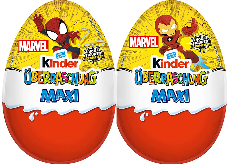 Auf der Umverpackung vom MAXI Ei ist zu entnehmen, dass „1 von 4 Figuren garantiert wird“.