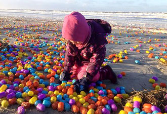 Nach Sturmtief werden Hunderttausende bunte Eierkapseln mit Spielzeug auf der schönen Nordseeinsel Langeoog angeschwemmt