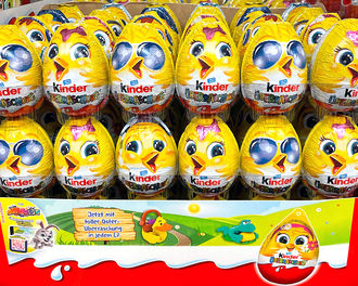 Gelb, laut und niedlich schauen die neuen Küken Überraschungseier aus. Alle Eier haben oben eine Lasche, so dass diese Küken Eier aufgehängt werden können. In den Eiern steckt ein Figurensatz Easter Race.