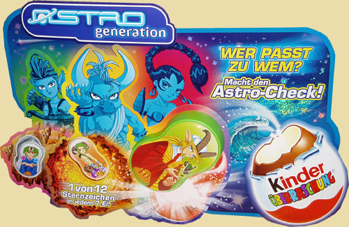 Ferrero und Cultcars starten mit 15 VW Fox im Astro Look eine noch nie da gewesene Werbekampagne. 15 Astro-Generation-Cars (VW Fox) touren in den nächsten Wochen durch 12 bundesdeutsche Großstädte und fordern gezielt die 18-29 jährige Zielgruppe zur Teilnahme am „Astro Check“ auf. Das Besondere: in jedem 7. Ei steckt jetzt ein exklusiver Sternzeichen-Anhänger im Manga-Design, der so genannte „Astrogenerator“. Zu der Promotion Tour gehören auch „Indoor“-Events wie Single- und Szene-Parties. Hier suchen CultCars-Promoter passende Astro-Traumpaare. Fazit: Das ist doch mal was!
