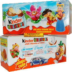 Aus England kommt dieses weihnachtliche 6er Pack. Im 6er Pack sind zwei 3er Packs der Mission Maulwurf. Diese coolen 6er Packs stammen aus Luxemburg. Alle drei 6er Packs haben den Slogan "Halloween Party" aufgedruckt. Der Inhalt werden wahrscheinlich entsprechende Halloween Figuren und Spielzeug sein. Quelle: MARY-LINE Aus Hong Kong kommt dieser Palettenanhänger der Smarts. Beworben wird der Ferrero Smart der rechts abgebildet ist. Zum Befestigen des PAHs wird der schmale Plastikstreifen zwischen die Kartons geschoben. [Suche auf eBay nach diesem Smart starten] In Israel sollen diese beiden Tom und Jerry 3er Packs 2005 erscheinen. Die beliebten Tom & Jerry Figuren gibt es im Eierlei Shop. [Link zum Shop] Quelle: Sofia