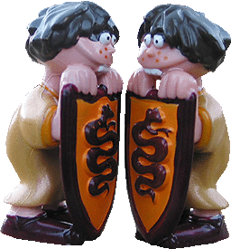 Die Variante von Schildknappe Willi hat sich gut getarnt, so dass sie erst jetzt entlarvt werden konnte. Beim genauen Hinschauen sieht man bei der linken Figur, dass das Grundmaterial angemalt wurde. Damit gibt es zwei unterschiedliche Figuren. Bei der einen wurde das Gesicht, die Hände und die Beine mit Hautfarbe bemalt und bei der anderen Figur ist das hautfarbene Grundmaterial unbemalt. "Schwer zu erkennen!". Eigentlich ist es auch völlig überflüssig das hautfarbene Grundmaterial noch in Hautfarbe zu bemalen. Bei den Willi mit bemalter Hautfarbe handelt es sich auch ganz sicher nicht um eine Figur aus dem Ausland, einem 3er Pack oder aus der kommenden Sonderverpackung. Nach der Durchsicht von unseren Schildknappen Willi aus dem Shopbestand (ca. 20 Stück) hatten wir 5 Stück dabei, von denen die Hautfarbe bemalt wurde. Also keine seltene Variante, aber eine eindeutige Serienvariante. Sehr weit unter dem Katalogpreis können wir über 60 Varianten im Eierlei Shop anbieten. [Zum Shop]