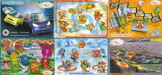Die sechs Beipackzettel zeigen uns das Europa Spielzeug von 2008 und 2009. Unter anderem sind wieder Smarts dabei.