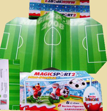 Im 6er Pack der Magic Sport II werden zwei Figuren garantiert. Wie bei der ersten Magic Sport Serie ist ein Spielfeld dabei, wo gleich die neuen Figuren ausprobiert werden können. Auslieferungsstart ist der 27. Dezember. Am 25. 03. 2008 kommt die weitere Figur Elmo der Elfmeterschütze in einer Sonderverpackung hinzu. [Live Suche auf eBay starten nach Magic Sport 2]