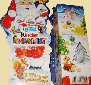 Dieser weihnachtliche Eiermann beinhaltet ein Maxi Ü-Ei. Die Eiermann Verpackung kann nach dem Entnehmen des Maxi Eies wieder zusammengedrückt werden. Unserer Meinung sehr schade, dass es nur eine Testware ist, da die Verpackung hübsch ist und nicht gleich weggeworfen werden muss, wie es bei genereller Verpackung der Fall ist. Quelle: [Diese eBay Auktion] In diesem Kinder Mix Pack ist neben einem umfangreichen Schokosortiment ein Stoff Elch enthalten. Auf dem rechten Bild sind 3 verschiedene Eiermann Weihnachtskarten zu sehen. Das Ü-Ei steht etwas hervor. Fazit: Gut umgesetzte Produkte, aber leider nur Testware. Vielleicht gibt es ja das ein oder andere Produkt als Massenware. Quelle: [Diese eBay Auktion] Quelle: [Diese eBay Auktion]