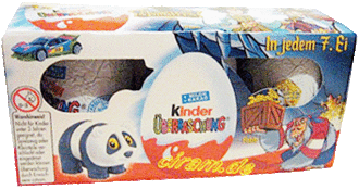 In Italien gibt es wieder neue mini Gransorpresa Eier. Diese Ü-Eier sind kleiner als die Maxi Eier und größer als das gängige Ü-Ei. Das Foto zeigt die beiden unterschiedlichen Verpackungen. Einmal für Jungen und einmal für Mädchen. Der Jungen und Mädchen Satz besteht immer auf fünf Loony Tunes Figuren. Dies ist ein 72er Display Monster & Piraten aus Italien. Es wird auch damit geworben, dass 100 neue Überraschungen in den Eiern sein werden. In Kanada gibt es 2009 dieses 3er Pack. Danke an Marcel (go-llum) In der Schweiz erhält man es dieses Spielfeld von Madagaskar. Es beinhaltet zwei 3er Packs, die mit 5 Figuren bestückt sein sollen. Die Figuren können gleich als Spielfiguren genutzt werden. Quelle: [Diese eBay Auktion] Im Eierlei Shop gibt es noch Sätze der Madagascar II Figuren. Neue Top Figuren sind gerade im Shop hinzugekommen. Ein Drittel des Bildmaterials wurde verbessert und viele Preise sind gesenkt worden. Schau doch mal vorbei Ei Ei Ei! [Eierlei-Shop. de]
