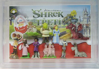 In Tschechien gibt es diese Präsentationsbox von Shrek. Enthalten sind alle 10 Figuren von Shrek der Dritte. Quelle diese: [Diese eBay Auktion] Die "Ca Rigole a l\'ecole" kommen im September in Frankreich in die Ü-Eier. Die Serie besteht aus 8 Figuren. Das Bild oben zeigt den BPZ und darunter sind die 8 Figuren. Die Namen und Nummern der einzelnen Figuren lauten: TTO78 Leo l\'intello TTo78 TTO79 Valentin le romantique TTO80 Sami le musicien TTO81 Lauryne la peste TTO82 Sofian l\'ange TTO83 Evan le bagarreur TTO84 Lea la belle TTO85 Killian le cancre In Spanien wird es ebenfalls die Serie geben. Dort heißen sie COLEAMIGOS Quelle: [Forum MLJ] In Ungarn gibt es ein Superpuzzle von den Extra Robots. Das Bild zeigt den BPZ, wo alle 4 Puzzleecken drauf zu sehen sind. Es gibt neben dem deutschen BPZ und dem normalen BPZ ohne Text auch diese EU Version von dem SHREK BPZ. Bei dieser Ausgabe hat jede Figur ihren eigenen BPZ auf dem jeweils die dementsprechende Figur abgebildet ist.