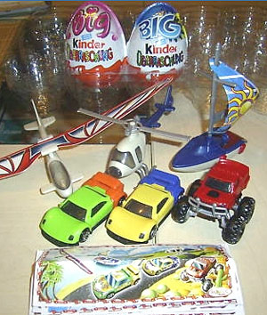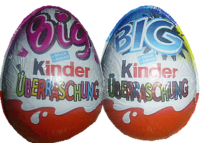 Heute ist in Deutschland diese Testware aufgetaucht. Es sind BIG Kinder Überraschungseier. Es gibt diese Eier für Mädchen und Jungen. In den Eiern ist enstprechendes Spiezeug. Diese eBay Auktion (blaues Ei)Diese eBay Auktion (rosa Ei)
