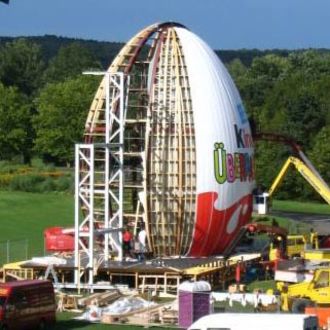 Nicht nur das normale Ü-Ei hat ein neues Gewandbekommen, sondern auch das Maxi Ei. Die Umverpackung ist mit einem Eiermann Gesicht versehen worden. Wahrscheinlich handelt es sich hierbei erst mal um eine Testverpackung. Über dem Maxi Ei steht "mit einer tollen RIESEN ÜBERRASCHUNG".
