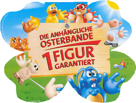 Dieser Palettenanhänger kommt vom 4er Pack der Osterbande. Es wird pro 4er Pack eine Figur der Serie garantiert. Der Satz besteht aus 8 Figuren. Die Sätze und Einzelfiguren sind schon reichlich auf eBay zu bekommen: [Live Suche auf eBay nach der Osterbande]