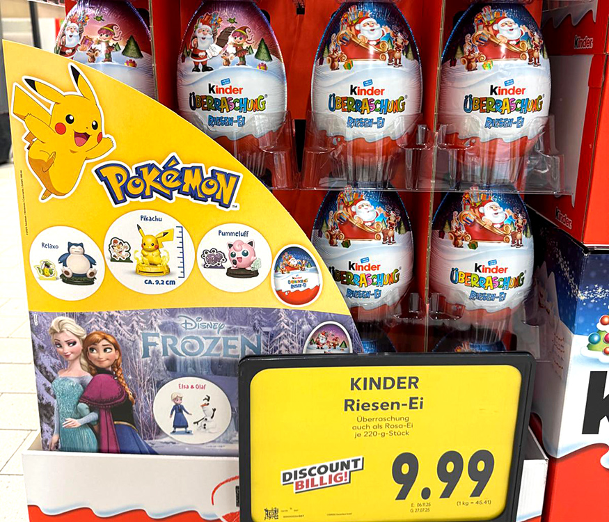 Dieses Jahr gibt es das 220g riesen-Ü-Ei mit exklusiven Inhalten aus den beliebten Welten Pokémon und Frozen!
