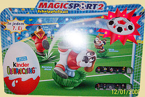 Das Bild zeigt die Werbetafel von Magic Sport 2. Das Highlight der Tafel sind die 5 Leuchtdioden um dem Ball, die abwechselnd aufflackern. In der Tafel ist unten rechts ein Satz Magic Sport 2 Figuren integriert, der in jeder Filiale gewonnen werden kann. Danke an matlar12 für die News