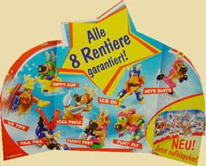 Der aufklappbare PAH schaut mehr nach einem Werbeflyer aus. Die Werbung geht klar in die Richtung, alle 8 Figuren vorzustellen und wieder der Hinweis, dass für alle 8 Figuren garantiert wird. Unten rechts ist noch der Vermerk, dass der Adventskalender aufgeklappt werden kann genau wie der PAH. Danke an linzer-pezi