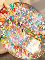 Offen gedacht gibt es hier sehr viele Optionen, die Ü-Ei Inhalte zusammen zu stellen. Nach Motto, nach Farbe, nach Jahrgängen usw. und das nicht nur als Tischplatte.
