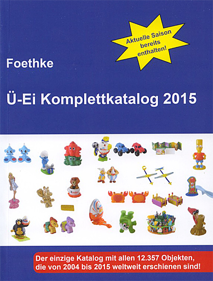 Die Überschrift des neuen Kataloges von Hr. Foethke lautet "Ü-Ei Komplettkatalog 2015". Fast unglaublich aber wahr ist der Cover Text weiter unten: "Der einzige Katalog mit allen 12357 Objekten, die von 2004 bis 2015 weltweit erschienen sind!" Wir haben ein Exenplar zugesendet bekommen und sind begeistert von der Quantität, aber auch Qualität des Inhalts. Das Format und das Papier des Kataloges erinnert an den Briefmarkenkatalog Michel. Der Preis beträgt 19,95 Euro. Der Katalog ist aktuell bis einschließlich Februar 2015. Im Katalog sind sehr viel Detailinformationen, die nur von einem Sammler ausgearbeitet werden können. Mehr Informationen und Bildmaterial in [dieser eBay Auktion von Hr. Foethke].