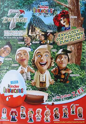 Von den 7 Zwergen gibt es dieses Poster. Uns sind die zwei Formate A3 und A2 bekannt. Im Shop gibt es neben diesem Poster noch mehr neue Artikel, wie z. B. Sätze von den Rentieren und Jagdfieber. 200 Sonderangebote erwarten unsere Shop Kunden im Dezember. Die Produktpalette bietet ca. 1500 Ü-Ei Artikel. [Zum Shop] [Sonderangebote] [Raritäten] [Varianten] [7 Zwerge]