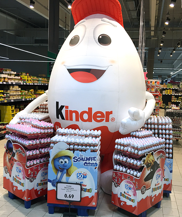 Rings um den Kinderino sind die neuen Aufsteller zu sehen. Aktueller Preis 69 Cent.