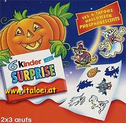 In Frankreich ist diese Sonderverpackung von dem Polarexpress erschienen. Das Bild zeigt zwei verschiedene Häuschen und Verpackungsformen. Von dem Häuschen gibt es unterschiedliche Motive. Wahrscheinlich werden sich 9 Ü-Eier in dem Pack befinden. In Italien gibt es wieder eine neue Presepe zur Weihnachtszeit. Dieses Presepe Krippe beinhaltet mehrere Figuren und Kleinteile. Eine Übersicht von älteren Presepes findet Ihr [HIER]. Quelle: www. ueberraschungsei. at Aus den Benelux Ländern kommen diese Sint Nicolaas Hüttchen. Insgesamt besteht der Satz aus 5 Stück. Die Hüttchen haben an der Spitze zwei kleine Löcher, womit sie an den Tannenbaum gehängt werden können. Den Satz kann man für 9. 90 Euro Sofort kaufen auf eBay. [Link zur Auktion] In Frankreich gibt es zu Halloween dieses 6er Pack. Das 6er Pack besteht aus 2 aktuellen 3er Packs mit einem Umkarton. Zusätzlich beinhaltet jeder Pack noch 6 verschiedene Halloween-Tatoos, die im Dunkeln leuchten! Quelle: www. italoei. at