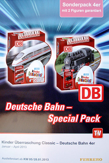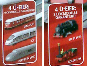 Im Januar wird es diese beiden 4er Packs geben. Pro 4er Pack sind 2 Modelle enthalten. Diesmal gibt es aber fünf Modelle insgesamt. Die Vergrößerung vom linken 4er Pack zeigt den WM-ZUG, den ICE und die ZEPPELIN LOK. Im rechten 4er Pack ist die BR B1 LOK und die ADLER LOK enthalten. Die 4er Packs wird es dann bis zum April geben. Danke Bernd für die News