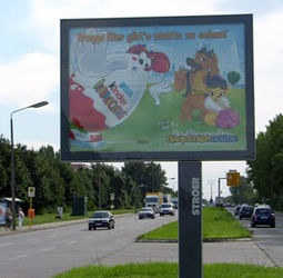 In den Städten ist eine neue Straßenwerbekampagne angelaufen. Das Foto ist im Kreis Berlin gemacht worden. Wer den TV Spot der Großstadthunde noch nicht gesehen hat, kann ihn auf kinderueberraschung. de anschauen. Danke an Carsten A.