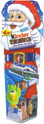 Ist schon komisch, dass jetzt schon bekannt ist, was am Ende des Jahres im Ü-Ei ist und die kommende Herbst Serie ist unbekannt! Auf dem Bild zu sehen ist eins der 4er Packs als Weihnachtsmann. Auf dem Zettel den der Weihnachtsmann in der Hand hält steht "4x Kinder ÜBERRASCHUNG. . . einer davon aus dem POLAR EXPRESS"! Unten auf der Verpackung sind zwei Figuren zu sehen (neben dem grünen Vogel). Das Bild gibt Anlass zu sagen, dass es eine richtige Serie zum Film geben wird. Diese Eckdaten sollen etwas Einblick zu der Serie verschaffen. "Polar Express", die Verfilmung des beliebten Kinderbuches von Chris Van Allsburg, schildert die Geschichte eines zweifelnden Jungen auf der Suche nach dem Weihnachtsmann, der eine außergewöhnliche Zugfahrt zum Nordpol beginnt (mit dem Polar Express) und sich dabei gleichzeitig auf eine Reise zu sich selbst begibt, die ihn lehrt, dass die Wunder des Lebens nie für die versiegen, die glauben. Der Junge, der auf dem Pack zu sehen ist, könnte die oben beschriebene Person sein. Darstellung des Film: Sony Pictures Imageworks und Visual Effekts Supervisor Ken Ralston. Beide für ihre innovative Arbeit bereits mit dem Oscar ausgezeichnet werden dabei helfen, die Geschichte lebendig in voller CGI-Animation umzusetzen. Das ist wohl der Grund, warum die Figuren etwas wie Zeichentrickfiguren ausschauen! Ab 18. November 2004 im Kino! Warner Bros Film Darsteller Tom Hanks Regie Robert Zemeckis [Poster vom Film] [Trailer vom Film] [Auktion des Werbeblatts]