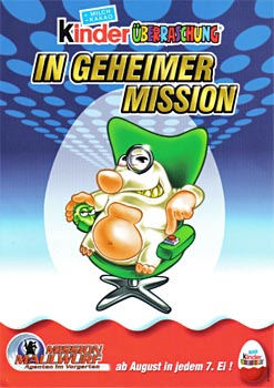 Die Poster zur kommenden Serie sind ein fester Marketing Bestandteil von Ferrero geworden. Dieses Poster zeigt Mike Mission und Lady Charme. Hinter den Figuren ist eine Ei Form dargestellt. Der Titel des Poster lautet "IN GEHEIMER MISSION". Im unteren Teil ist noch das Mission Maulwurf Logo und der Schriftzug "ab August in jedem 7. Ei!" abgebildet. Die Poster gibt es in drei Größen: DIN A2, A3 und A4. Die Posteroberfläche ist etwas glänzend, wobei das A4 Poster auch als Werbeblatt bezeichnet werden kann. [Live Suche nach Mission Maulwurf eBay starten] Die beiden unterschiedlichen Motive sollen wahrscheinlich einmal die guten und einmal die sabotierenden, bösen Maulwürfe zeigen. Dr. Mole ist der Chef aus der Unterwelt und hat den Finger schon am Auslöser, um die ferngesteuerten Gartenzwerge zu aktivieren. Ansonsten ist diese Poster identisch mit dem Anderen. Die coolen Poster können ab sofort in unserem Shop zum günstigen Festpreis gekauft werden. [Zum umfangreichen Eierlei Shop]