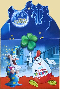 In Kanada soll es diese beiden Verpackungen zu Halloween geben. Das linke Bild ist ein Frankenstein 4er Pack und das rechte scheint ein 2er Pack zu sein. Quelle: [Kinderhobby. com] Das Bild zeigt einen Falt Flyer aus Tschechien. Dort wo das Kleeblatt ist kann der Flyer nach unten hin geöffnet werden. Im geöffneten Zustand stellt der Flyer die Figuren der Magischen Schulstunde vor. Im Eierlei Shop ist der deutsche Satz der Magischen Schulstunde gerade im Angebot. [Zum Eierlei Shop]