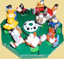 Das Diorama der Magic Sport 2 ist ein Fußball. Der Ball kann auseinandergeklappt werden (siehe Bild rechts). Dort stecken die Magic Sport 2 Spieler. Quelle: [Diese eBay Auktion]