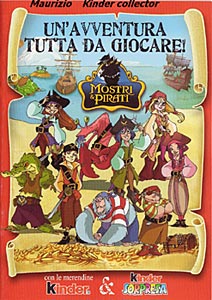 In Italien gibt es zu den Mostri & Pirati ein 20 Seiten langes Buch. Das linke Bild zeigt das Cover des Buchs.   Aus Frankreich kommen die rechts zu sehenden Decor Anhänger. Die Anhänger können z. B. an den Tannenbaum gehängt werden. Auf dem Anhänger befindet sich ein halbes Ei.