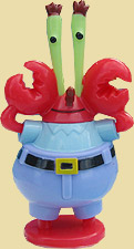 Bei den Figuren handelt es sich um die Diorama Figuren, die sehr wahrscheinlich zu 100% identisch sind mit den Serienfiguren. Die Spongebob Figuren sind überwiegend Steckfiguren. Die Hauptfigur ist ohne Zweifel Spongebob, daneben steht sein Freund Patrick und Mr. Krebs. SpongeBob Patrick Mr. Krebs Thaddäus der Tintenfisch ist die größte Figur der Serie. Neben dem Tintenfisch steht die Freundin von Spongebob Sandy, das Eichhörnchen. Die Hausschnecke von Spongebob heißt Gary und als letztes kommt noch Plankton, die mit Gary die beiden kleinsten Figuren sind. Generell sind die Figuren relativ empfindlich. Thaddäus Tintenfisch Sandy Gary Plankton