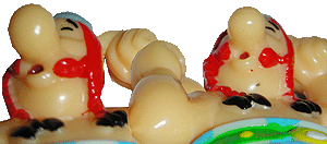 Bei den Varianten von Asterix und den Wikingern ist es leider wieder so, dass es in Internet-Auktionen Fälschungen der Figuren gibt die leider immer wider teurer verkauft werden. Die deutschen Asterix Figuren unterscheiden sich eigentlich nicht von den in anderen Ländern ausgelieferten Figuren. Es gibt unterschiedliche Details, wie z. B. die Nase von Obelix. Die linke Figur mit der dickeren Nase ist eine deutsche Figur und die rechte Figur ist eine aus Frankreich. Die neue Miraculix Figur hat Ähnlichkeit mit der alten Miraculix Figur von 1975. Hier sollte darauf geachtet werden, dass man nicht die aktuelle Miraculix Figur als alte Figur untergejubelt bekommt. Im Eierlei Variantenarchiv sind echte Varianten von Asterix und die Wikinger zu sehen. Alle Figuren von Asterix und die Wikinger gibt es als Satz und Einzelfiguren im Eierlei Shop: [Asterix] [Zum Shop] [Raritäten Rubrik] [Varianten]