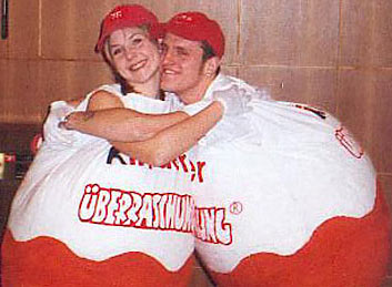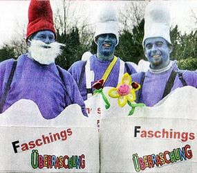 Auf dem Bild sind drei noch nicht bekannte Schlümpfe aus blauen Grundmaterial zu sehen, oder sind sie nur dunkelblau bemalt? Sicher ist, dass die drei aus dem "Faschings-Überraschungsei" sind :-) Zur Faschingzeit ist einfach alles möglich. Tätä tätä tätäääää :-) Ein weiteres gelungenes Fasching Outfit haben diese beiden entworfen. Immer wieder schön zu sehen, wie Ü-Ei Fans ihr Hobby während der Faschingszeit ausleben können. Wir wünschen alle einen schönen Rosenmontag!
