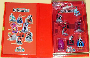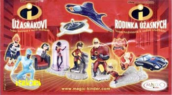 In Belgien ist dieser Metallkoffer der Unglaublichen erschienen. Im Koffer sind 6 Ü-Eier. Besonders gelungen ist der fliegende Eiermann als Superheld. www. italoei. at Dieser BPZ der Unglaublichen kommt aus Tschechien. Unter dem anderen Logo steht aber noch eine Sprache, die uns zwar nicht viel sagt aber immerhin soviel, dass der BPZ für zwei Länder vorgesehen ist. Dieses Buchhüllen Diorama der Unglaublichen kommt aus Italien. In dem Diorama befinden sich die 8 Figuren der Unglaublichen, die in Plastik eingebettet sind. Das Diorama wird mit einem dünnen gelben Bändchen geschlossen gehalten. Im Eierlei Shop gibt es die Unglaublichen als 11er Satz sowie als Einzelfiguren. [Zum Ü-Ei Shop]