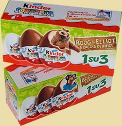 In Ungarn gibt es diese Kinder Mix Packungen in unterschiedlichen Farben. Das Bild rechts zeigt uns ein 4er Pack im Weihnachtsdesign. Es gibt zusätzlich noch zwei 4er Packs der "Magischen Schulstunde" In Italien gibt es dieses 6er Pack der "Magischen Schulstunde". Die Packs gibt es mit unterschiedlichen Covern. Ein 6er Pack besteht aus zwei 3er Packs. Die 3er Packs kommen ebenfalls aus Italien. Enthalten sind die "BOOG & ELLIOT" Figuren. Garantiert wird eine Figur pro 3er Pack. Danke an Maurizio für die News