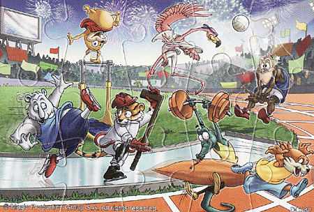 In Luxemburg sind die Barbie Figuren in diesem 3er Pack zu bekommen. Damit kommen immer mehr Barbie Figuren auf den Ü-Ei Markt, so dass an dem Gerücht einer kommenden deutschen Serie was dran sein könnte. [Live Suche auf eBay nach Barbie starten] Von den Sporty Animals gibt es dieses Puzzle. Quelle: [Diese eBay Auktion]