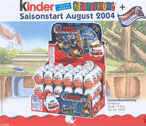 Von der Mission-Maulwurf wird es 6er Packs geben wie das linke Werbeblatt zeigt. Auf dem anderen Werbeblatt ist noch der klassische 72er Theken Display Aufsteller in groß zu sehen. Die Bilder stammen aus einer eBay Auktion. Zur Zeit werden von Ferrero alle Auktionen betreffend der neuen Herbserie gestoppt [Mehr dazu in diesen Bericht des Eierlei Forums], sonst noch der Link zu dieser Auktion [Zur Maulwurf Auktion]. Mal sehen wie lange diese Auktion noch zu erreichen ist!