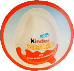 2004 waren vereinzelt in Deutschland die Merendero Eier zu bekommen (Testware). In den Merenderos waren die ULIX 3D Wackelbilder. Es gab sogar einen PAH, aber auch dieses runde Pappschild oder Werbestecker. Ausführliche Informationen zu den deutschen Merendero gibt es in diesem Eierlei Bericht: [Merendero]