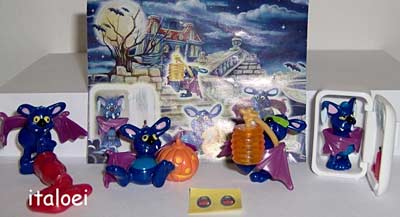 In Kanada erscheinen 2005/2006 die Motocoyoten. Die BPZ werden in den Sprachen Englisch und Französisch ausgeliefert. Die Eier gibt es in 2-pak, 3-pak, 4-pak, 24-pak und Kinder Mix. Danke für die Informationen an Wolfgang M. In Frankereich werden im Herbst diese 4 niedlichen Fledermäuse herausgebracht. Es ist keine Haupt- oder Nebenserie, sondern zählt zu dem Halloween Spielzeug 2005. Wahrscheinlich wird es die Fledermäuse auch in anderen EU Ländern geben. Quelle www. italoei. at Die neuen 4 Smart Modelle 2005 gibt es jetzt sogar schon auf eBay zu kaufen. [Link zu den neuen Smarts]