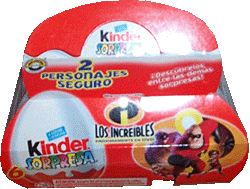 Das Bild zeigt uns den Palettenanhänger aus Italien. Der PAH hat die Maße von 13cm x 14cm. Der PAH soll nicht aus Pappe, sondern aus Plastik sein. Ebenfalls aus Italien kommt dieses 6er Pack der Unglaublichen. Von dem 6er Pack gibt es unterschiedliche Cover. Das Bild zeigt die Rückseite von einem 6er Pack. Garantiert wird, dass 2 der 6 Eier mit einem Inhalt der Unglaublichen bestückt ist. Hinzu kommt, dass noch ein Dekor-Aufkleber in jeder Packung ist. Alle Cover können auf www. italoei. at eingesehen werden. In Spanien ist neben einem Unglaublichen 3er Pack noch dieses 6er Pack erschienen. Das 3er und 6er Pack sind vom Design identisch. Alle deutschen Einzelfiguren der Unglaublichen gibt es im Eierlei Shop. [Link zum umfangreichen Ü-Ei Shop]