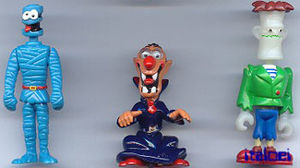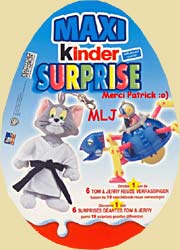 Dieses 6er Pack kommt aus Israel. Enthalten sind zwei Fantasmini Figuren. Die Verpackung ist so gestaltet, dass sie nicht einfach weggeworfen werden soll, sondern es kann eine regelrechte kleine Stadt daraus gestaltet werden (Bauanleitung ist unter dem 6er Pack). www. ue-ei-meister. de In Frankreich werden die Pollux Figuren kommen. Dieser Pollux Blechkoffer beinhaltet 6 Ü-Eier. In dieser eBay Auktion gibt es den Pollux Koffer. [eBay Auktion] Die Figuren aus der französischen Monsterhotel Serie sind funktionell, wie z. B. bei diesen Dreien. Bei der Mumie kann man auf den Kopf drücken und sie erhebt die Arme. Dracula rollt mit den Augen und bei Frankenstein leuchten Kopf & Hände. Quelle: www. italoei. at Dieses Papp Ei kommt aus Belgien. Geworben wird für die Maxi Eier. Neben der Spielzeugabbildung ist noch Tom im Karateanzug als Plüschanhänger zu sehen. Quelle: MLJ
