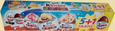 In den Niederlanden gibt es beim Kauf von 2 Ferrero Kinder Produkten eine gratis CD-ROM von "De Club van Sinterklaas" dazu. Was auf der CD drauf ist kann zum Teil dem Cover entnommen werden, es sind Games, Screensaver, Chatafbeeldingen, Wallpapers und Kleurboek! Danke wimkroon In der Schweiz ist das Jagd Fieber ausgebrochen. Das Bild zeigt ein 7er Pack, wo 3 Inhalte vom Jagd Fieber präsentiert werden. Auf der Rückseite des Pack ist eine Bastelvorlage vom Jagd Fieber. Dies ist ein 6er Pack aus Österreich. Es besteht aus zwei 3er Packs. Auf der Verpackung steht 5+1, was bedeuten soll das es 6 Stück zum Preis von 5 gibt. Quelle: [Diese eBay Auktion]