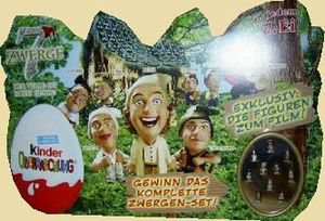 Dieser Pappaufsteller der 7 Zwerge beinhaltet den gestern vorgestellten Spiegel mit den 10 Figuren. Man hat die Möglichkeit an einen Gewinnspiel teilzunehmen und das komplette Zwergen-Set (den Spiegel) zu gewinnen. Um an dem Gewinnspiel teilzunehmen, muss nur eine Teilnahmekarte ausgefüllt werden, die dem Aufsteller beiliegen. Quelle: [Diese Auktion] [noch eine Auktion mit der Teilnahmekarte].