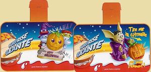 Diese beiden PAH werben für die großen Kinder Freude Kugeln, die als Kürbis verpackt sind. Der erste PAH mit den Hippos scheint mit HAHAHA Sound zu sein und der andere mit der Feldermaus könnte leuchten. Die beiden PAH stammen aus Frankreich. Wie dieses 3er Pack aus Italien beweist, gibt es die SpongeBob Figuren sogar in den Merendero Eiern. Von einer Figurengarantie pro Dreierpack ist leider nichts zu erkennen. www. italoei. at Das Bild zeigt uns eine Testversion vom Weihnachtskalender 2004 der nicht auf den Markt kam. Zu bekommen ist diese Testversion in dieser [Auktion], wo noch die andere Seite des Kalenders zu sehen ist. Danke für die Bilder an Hans-Dieter