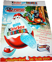 Auf diesem WB ist der Eiermann die Hauptfigur und nicht Mike Mission ;-) Dieses WB zeigt hauptsächlich die Eiermann Figur mit rotem Cap. Unter dem linken Fuß steht Ü Ei. Oben rechts ist die eigentliche Hautfigur Mike Mission zu sehen, darunter steht noch Die neue Sammel-Serie mit 10 verschiedenen Figuren und darunter in klein Mit einem Maulwurf Magic-Code. Des weiteren wird auf den Saisonstart hingewiesen (16. August). Der Satz Mission Maulwurf kann im Eierlei Shop vorbestellt werden. [Zum Eierlei Shop] Mehr zum Thema Eiermann auf Eierlei [Zur Eiermann Seite]