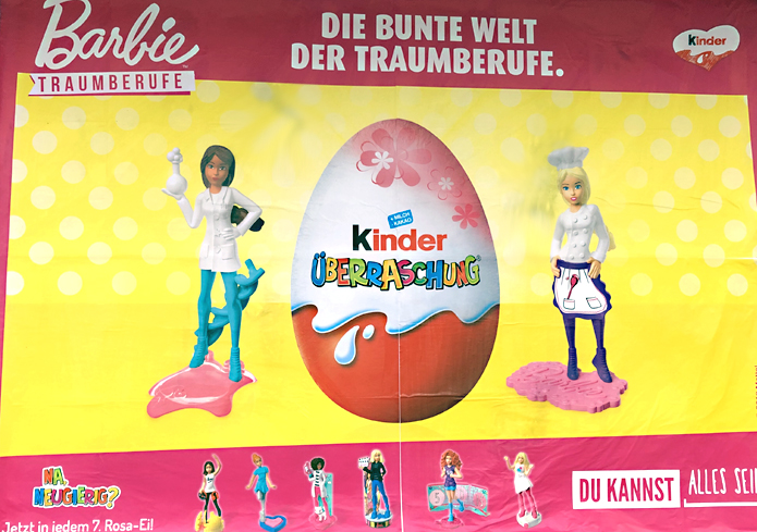 Im Mittelpunkt des 3 mal 2 Meter Plakats steht das Überraschungsei.