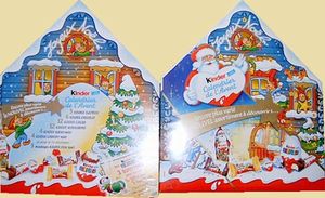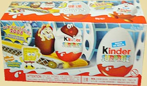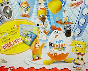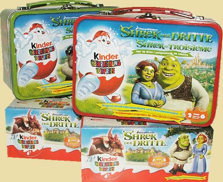 In der Schweiz sind diese beiden Blechkoffer von Shrek der Dritte zu bekommen. In den Koffern sind zwei 3er Packs. Garantiert wird pro 3er Pack eine Figur. Quelle: [Diese eBay Auktion] In Frankreich gibt es dieses Kindermix Kalender. Auf der Rückseite sind in der Ecke unten rechts Wichtel zu sehen. Quelle: italoei. at In Taiwan gibt es dieses 3er Pack. Im 3er Pack sind Spongebob und Babyfeuerwehr Figuren. Das Bild rechts zeigt das Werbeplakat zu dem 3er Pack. Quelle: maddin-ffm