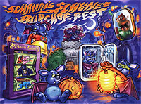Trotz genereller Auslieferungsverschiebung werden jetzt nach und nach die Halloween 2003 Ü-Eier kommen. Zu erkennen sind die Ü-Eier an den Halloween Hütchen. Auf dem BPZ rechts und links sind unterschiedliche Halloween Inhalte zu erkennen. Das Motto lautet "Schaurig Schönes Burghof-Fest" Parallel dazu kommen die Halloween Kurbisse (Kinder Freude). Die Kurbisse beinhalten z. B. die Kicherhexe Trudi Blotz als Plüsch Figur. Rechts zu sehen ist der Palettenanhänger zu den Happy Halloween 2003. [Live Suche auf eBay. de nach den neuen Halloween Inhalten starten]